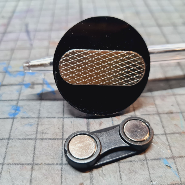 My pins come with 1 magnet on the back. They are out of acrylic and 4cm+/- in diameter.
